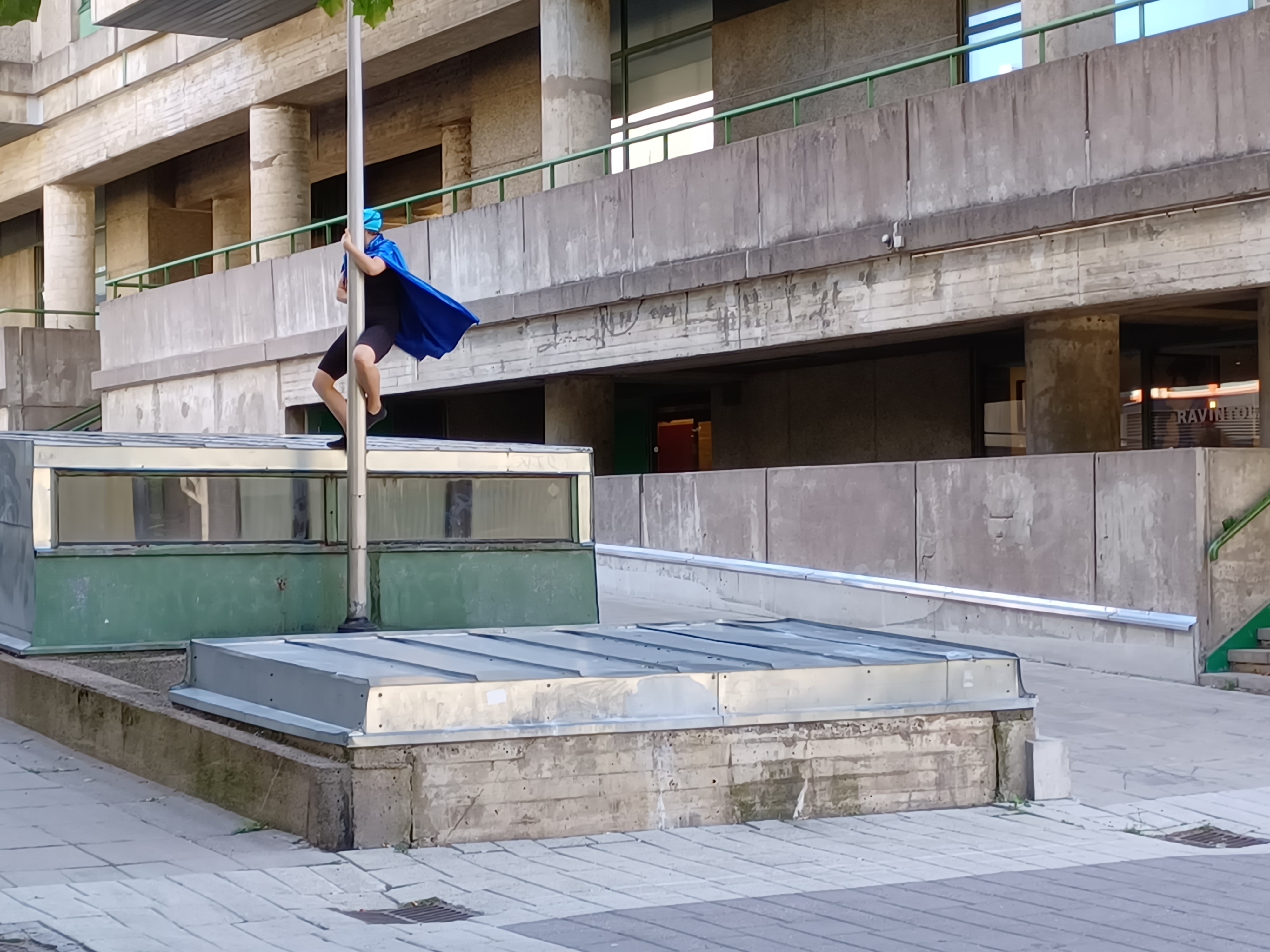 Lapsille suunnattu katuteatteriesitys Taiteiden yönä Helsingin Karhupuistossa. Platform on komediallinen teatterimuoto, jossa 5-8 näyttelijää esittävät muutaman neliömetrin kokoisella näyttämöllä suurteoksen ilman lavasteita, rekvisiittaa tai erikoistehosteita