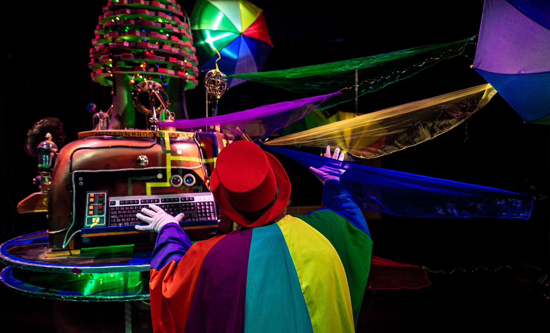 Sateenkaarikone on lapsen ja aikuisen vuorovaikutusta tukeva yhteinen seikkailu. Valon väreillä ja äänimaisemilla luoduissa tapahtumapaikoissa, tunnelmissa ja tunnetiloissa harjoitellaan tunneilmaisua ja herätellään mielikuvitusta lapsen kehitysvaiheeseen sopivilla tavoilla.